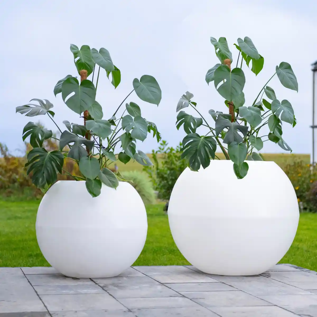 Donica JUPITER PL-JU64 w białej odsłonie to efektowna, niemal perfekcyjnie kulista forma o wysokości 64 cm i średnicy 75,5 cm. Jej proporcje są wyważone i harmonijne, a jednocześnie wyraziste. To duża bryła, która naturalnie przyciąga wzrok i buduje kompozycję wokół siebie. Nie jest subtelnym dodatkiem, staje się centralnym punktem aranżacji, nadając jej prestiżowy charakter. Czysta biel podkreśla linię kuli i wprowadza do przestrzeni wrażenie lekkości oraz świeżości. Jasna kolorystyka pięknie kontrastuje z zielenią roślin, rozświetla taras lub ogród i doskonale wpisuje się w nowoczesne, minimalistyczne oraz śródziemnomorskie aranżacje.