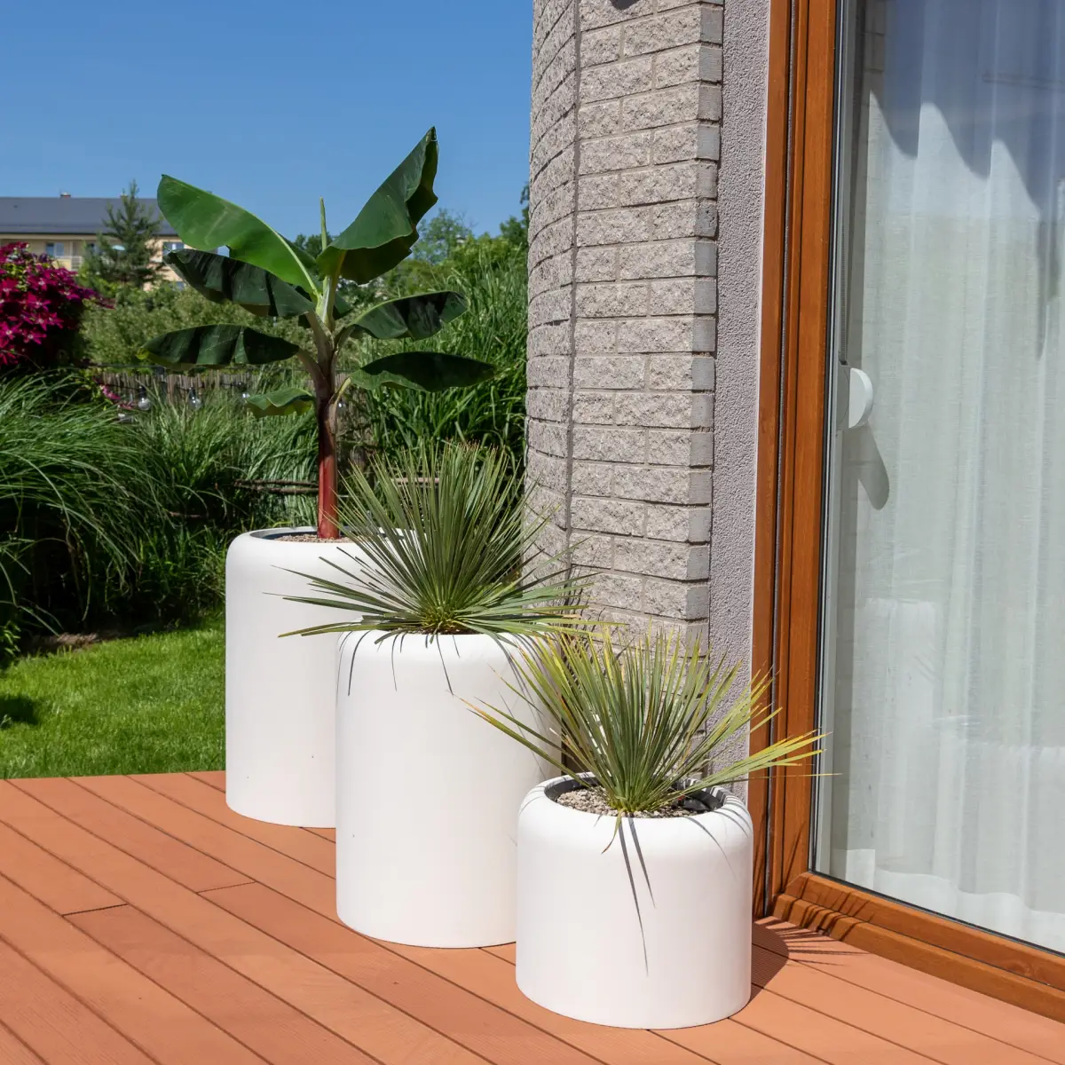 W tej galerii pokazujemy fotografie donic znajdujących się naszej ofercie w aranżacjach Klientów i własnych. Zdjęcia prezentują donice wraz z roślinami sfotografowane w naszym studiu, w domach Klientów, na tarasach i balkonach, a także w przestrzeniach publicznych. Z wielką przyjemnością udostępniamy fotografie wykonane przez osoby, które zakupione w naszym sklepie donice wykorzystały do aranżacji swojego otoczenia i zdecydowały się podzielić z nami tymi realizacjami. Zdjęcia zamieszczone w tej galerii prezentują donice tarasowe, donice na balkon, donice do domu i donice do biura. Zachęcamy do przeglądnięcia zdjęć i jesteśmy przekonani, że zainspirują one Was do zaplanowania i zrealizowania zielonych zmian w otoczeniu. Oferowane przez nasz sklep donice, które widać na poniższych zdjęciach charakteryzuje wysoka jakość wykonania, nowoczesne wzornictwo i odporność na warunki atmosferyczne. Większość naszych donic można bez przeszkód wykorzystać do aranżacji zarówno we wnętrzach, jak i w domach lub biurach.